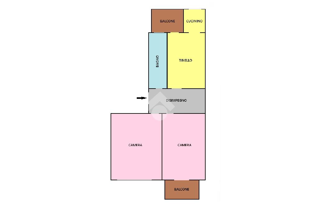 L'appartamento è composto da ingresso, due ampie camere da letto, tinello con cucinotto e bagno.